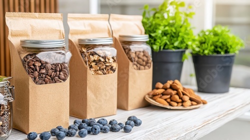Healthy snack setup kitchen food display bright environment close-up sustainable living focus