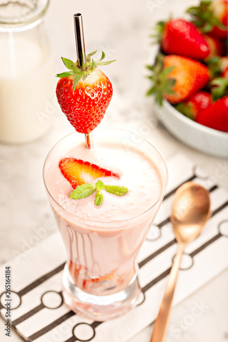 Healthy strawberry smoothie in glass