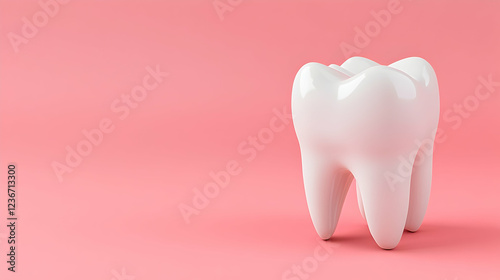 Healthy tooth on pink background; dental hygiene concept; website banner