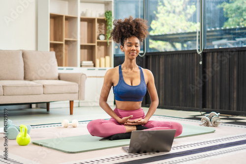 Healthy woman workout at home, exercise, fit, doing yoga, home fitness concept. healthy lifestyle