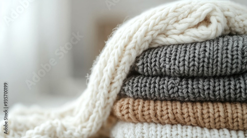 heap of assorted clothes in white, gray, and beige, casually spread on a surface, symbolizing minimalism, everyday life, and fashion simplicity