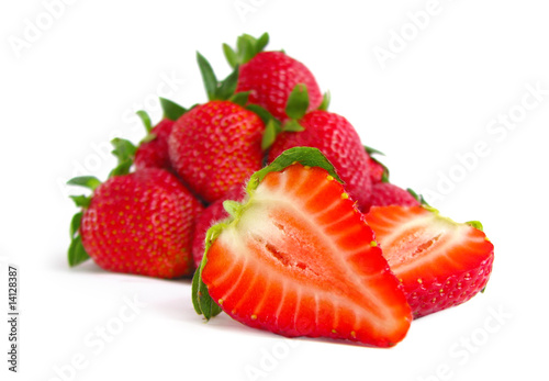 Heap of juicy sweet strawberries isolated on white background