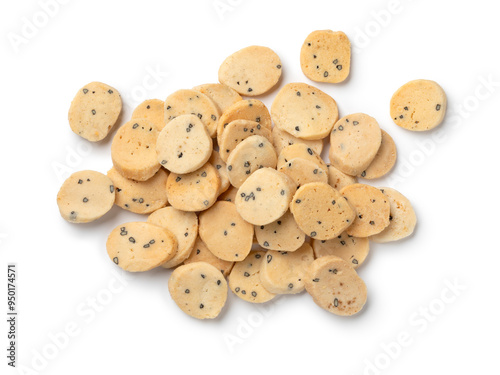 Heap of traditional Krichlate spicy miniature shortbread cookies close up isolated on white background