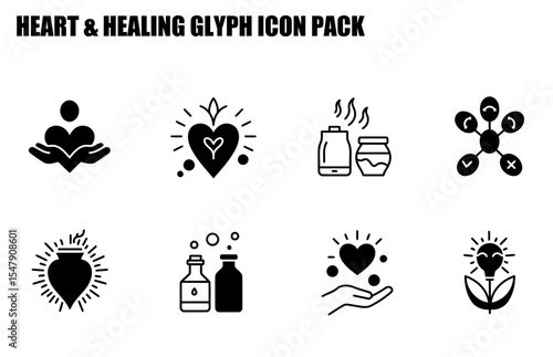 Heart and Healing Glyph Icon Pack. Universal icons for a range of wellness related topics.