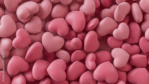 Heart background. Valentine Wallpaper with Pink love hearts. 3D Render