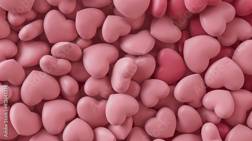 Heart background. Valentine Wallpaper with Pink love hearts. 3D Render