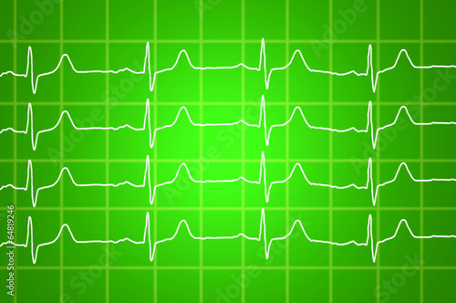 heart beats electrocardiogram over green background