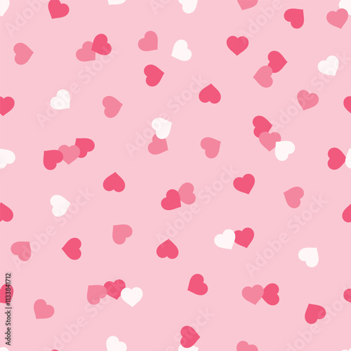 Heart Confetti Abstract Seamless Pattern. Love Pink Background with Hearts for Valentine's day or Birthday.