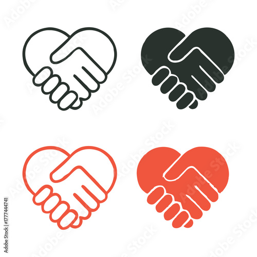 Heart handshake icons vector illustration symbolizing partnership and agreement