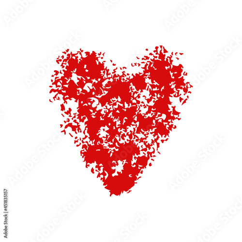 Heart icon. Red grunge silhouette. Front view. Vector simple flat graphic hand drawn illustration. The isolated object on a white background. Isolate.