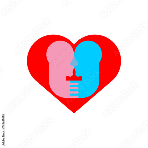 Heart in two heads. Lovers concept icon. Love sign