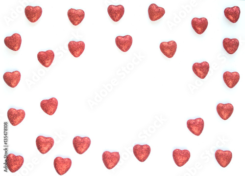 Heart isolated on the white background. Saint Valentines Day card. Mock-up. Shallow Selective focus. Copyspace. Top view