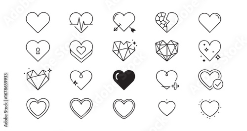 Heart line art icon bundle illustration