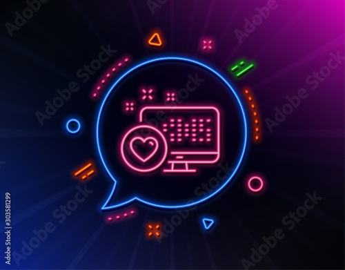 Heart line icon. Neon laser lights. Favorite like sign. Positive feedback symbol. Glow laser speech bubble. Neon lights chat bubble. Banner badge with heart icon. Vector
