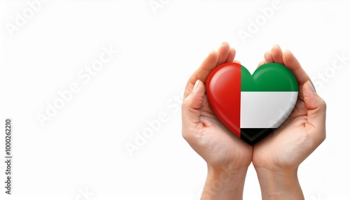 手で持っているアラブ首長国連邦の国旗のハート(Heart of United Arab Emirates flag held in hand.)