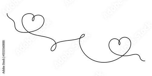 Heart one line art, hand-drawn heart, continuous contour, love concept. Feelings expression, festive enamored design romantic element Valentine's Day simple minimalist design. Editable stroke.
