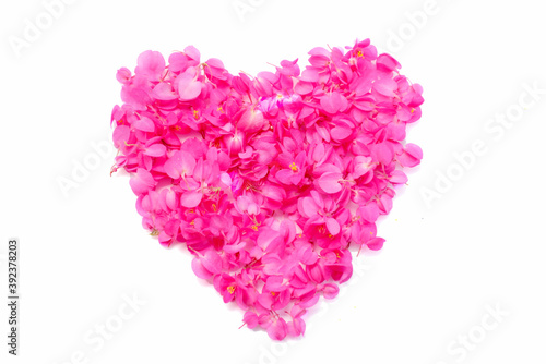 Heart petal of pink flowers isolated on white