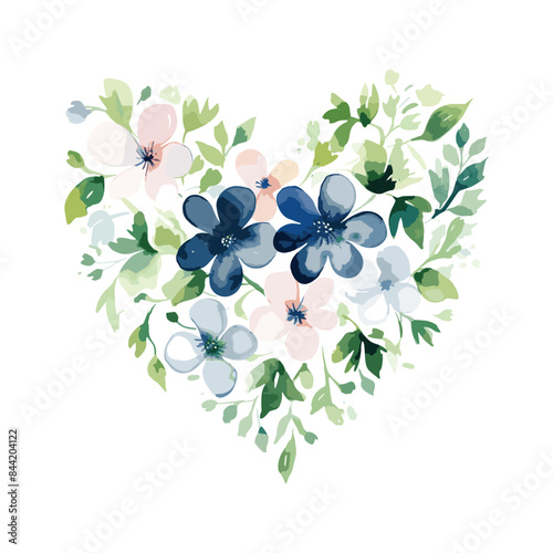 Heart shape flroal vector, watercolor floral love shape. Watercolor love shape floral butterfly vector, heart shape butterfly with floral design
