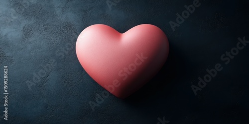 Heart shape in soft pink color against dark textured background illustrating love and affection