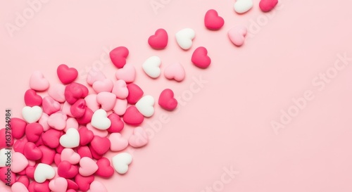 Heart Shaped Candy Sprinkles on Pink Background, Valentine's Day, Romantic Theme, Sweet Treats, Confectionery Concept