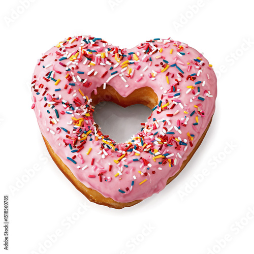 heart shaped donut with pink frosting and sprinkles isolated on transparent background