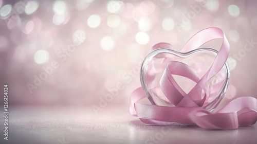 Heart Shaped Glass Decor with Pink Ribbons and Soft Blurry Background