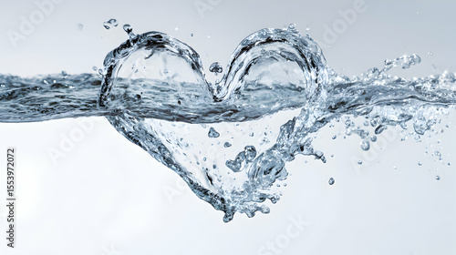 Heart Shaped Water Splash Against White Clean Background in High Detail
