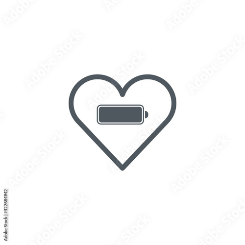Heart with Battery Charging icon . Valentines day concept. Stock Vector illustration isolated on white background.