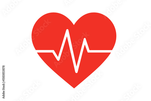 Heartbeat Line in Red Heart Shape – Medical Pulse, Cardiogram, ECG, EKG Symbol, Healthcare, Clinic Logo, Cardiology Concept, Isolated Transparent Vector Illustration for Medical Design