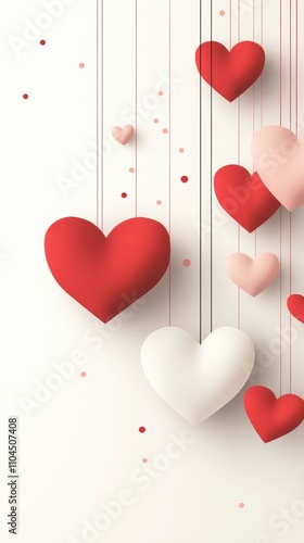 Hearts hanging on strings create a romantic and whimsical atmosphere, AI