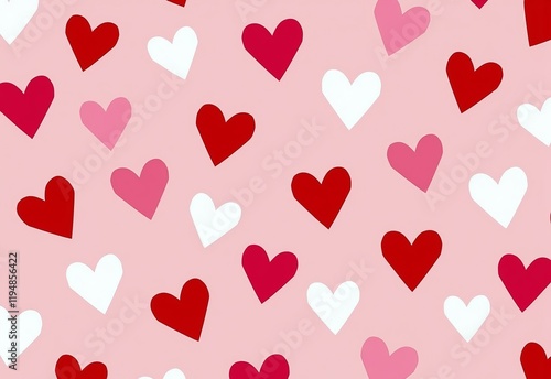 Hearts in Pink, Red, and White on Flat Fabric for Valentine's Day Quilts, Throws, and Decorations
