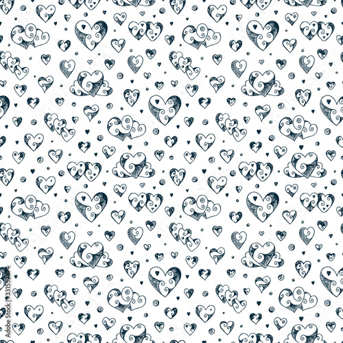 Hearts Seamless pattern. Hand drawn doodles Vector illustration. Happy Valentine's day. Black and white Valentine background.
