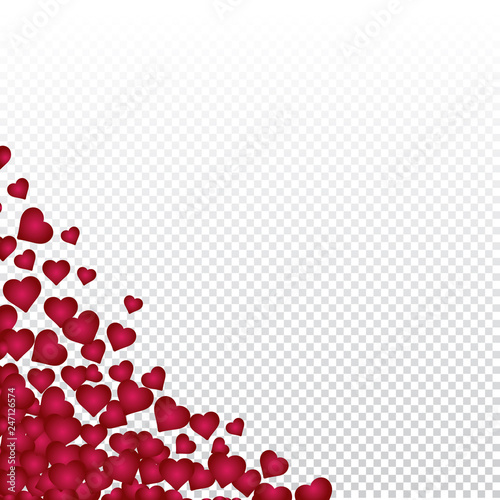 Hearts valentine background on transparent vector. Heart shapes Women's Day pattern with space for text or image