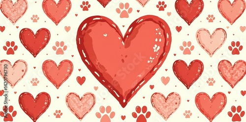 Heart-shaped brown paws doodle pattern for animal lovers, Cats, Background