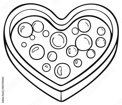Heart-shaped candy box filled with bubblegum gumballs outlined vector illustration