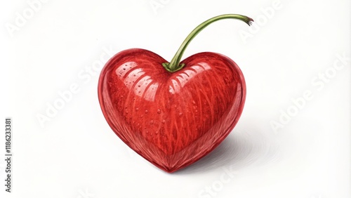 Heart-Shaped Cherry Colored Pencil Drawing, Red Fruit, Love Concept, Still Life Illustration Colored Pencil, Fruit Illustration