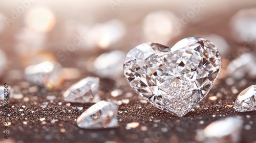 Heart-shaped diamond shines brightly among scattered gemstones on a surface