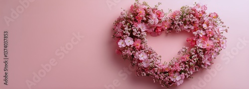 Heart-shaped Floral Arrangement in Shades of Pink on a Pastel Background for Decoration or Celebration