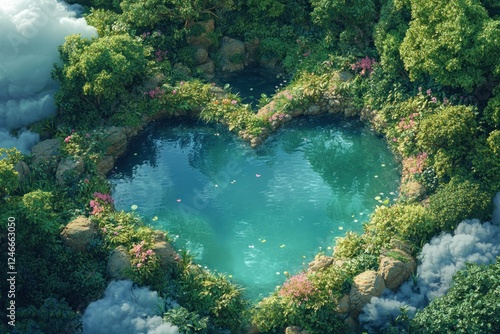 Heart-Shaped Pond Surrounded by Lush Nature and Vibrant Colors for Environmental Conservation
