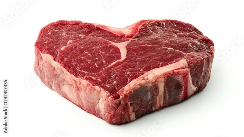 Heart-Shaped Raw Beef Steak Ready for Cooking on a White Background Ideal for Romantic Dinners, Barbecues, and Culinary Displays