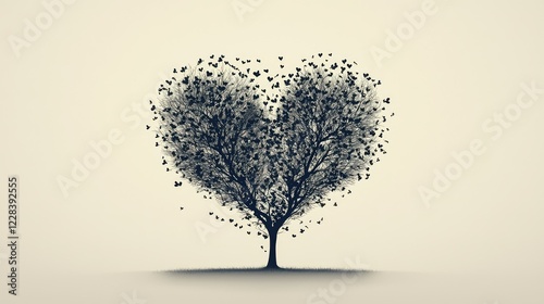 Heart-Shaped Tree Silhouette with Butterflies in Calm Background