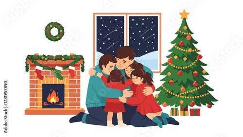 Heartwarming Christmas Moments: A family embraces in a cozy living room, surrounded by festive decorations, sharing a moment of love and togetherness amidst the cheer of the holiday season.