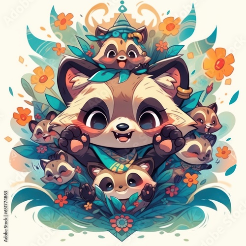 heartwarming image of a mischievous raccoon japanese cute manga style