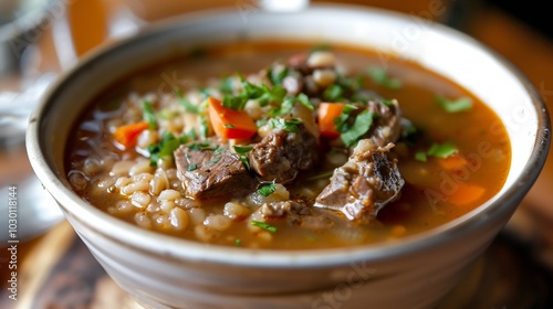 Hearty Beef Barley Soup with Parsley and Carrots