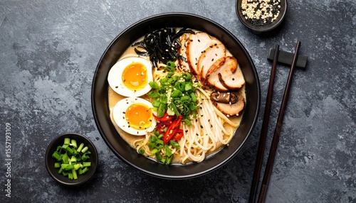 Hearty Chicken Ramen Noodle Soup In Bowl
