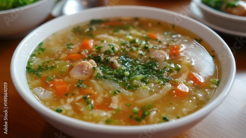 Hearty Chicken Soup with Carrots and Herbs in a Bowl for Lunch Comforting Warm Food Recipe