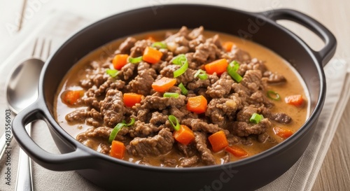 Hearty Ground Beef Stew with Carrots and Green Onions Comfort Food