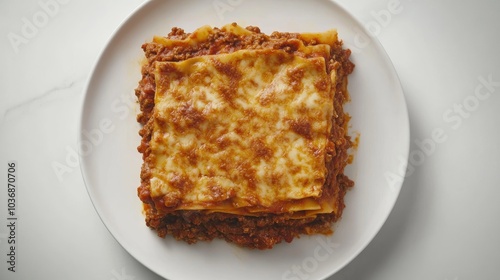 Hearty Lasagna from Above with Melted Cheese