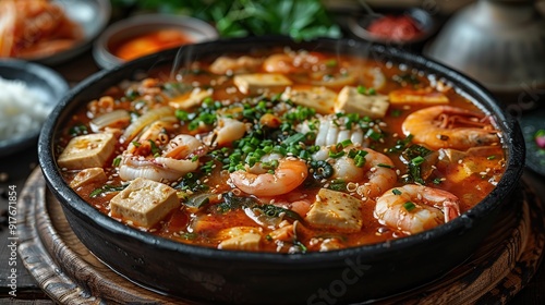 Hearty Sundubu Jjigae Spicy Soft Tofu Stew with Seafood