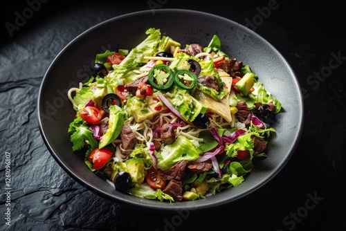 Hearty Taco Salad with Spicy Jalapeños and Masa Noodles
